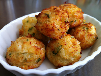 heat oil (1.5 inches deep) in medium-high heat. fry fritters in batches of 4-5 until golden brown. Serve warm or at room temperature.