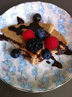 melt butter in non-stick pan over medium heat. pour half of the batter . cook for about 4 minutes until set. flip the crepe and cook the other side for about 2 minutes. allow to cook until set.
