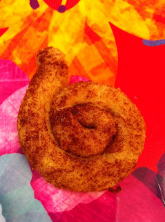 divide the dough into two.  roll out each dough into long rods, and make them into snail shapes.  place the snail shapes on a baking sheet.  if the dough is too soft to work with, put them in the freezer for 5 minutes.  sprinkle splenda and cinnamon on top.  bake at 320 for 12 minutes.