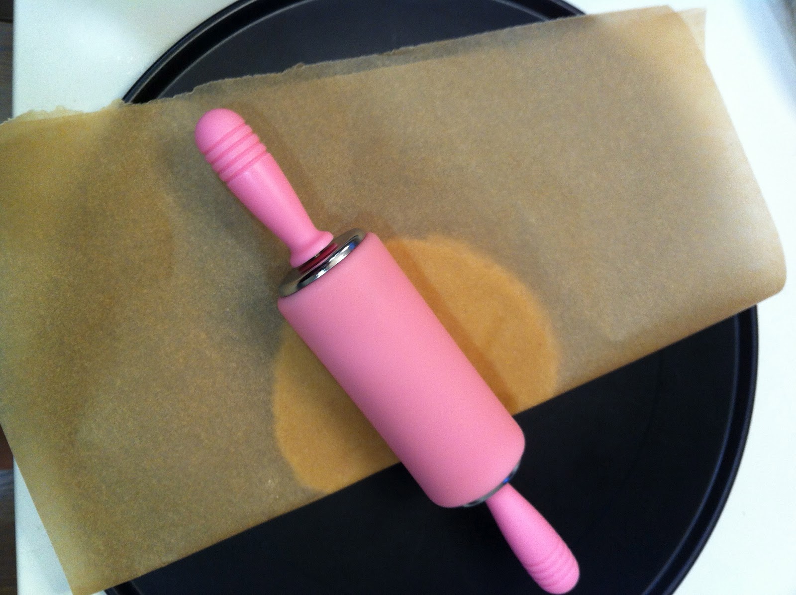 to make the sandwich, use a spatula to spread the chocolate on a solid cookie, then top it with a cut-out cookie. let the chocolate harden completely before serving.