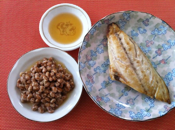 Natto is japanese fermented soybeans… it has strong smell and flavor, so it definitely is an acquired taste… but clara and my husband loves it. Saba is japanese name for mackerel. All the ingredients can be purchased at a japanese market.