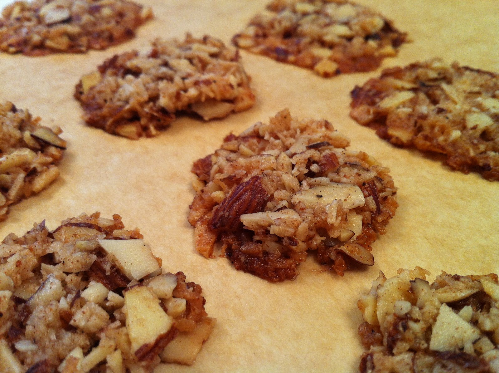 Mix all the dry ingredients to gather. Rub in the butter with your hand. Make four small piles of the mixture on a baking sheet lined with a parchment paper. Spread them out to a circle, making sure the ingredients are overlapping, but thinly spread out (about 1.5 inch diameter).