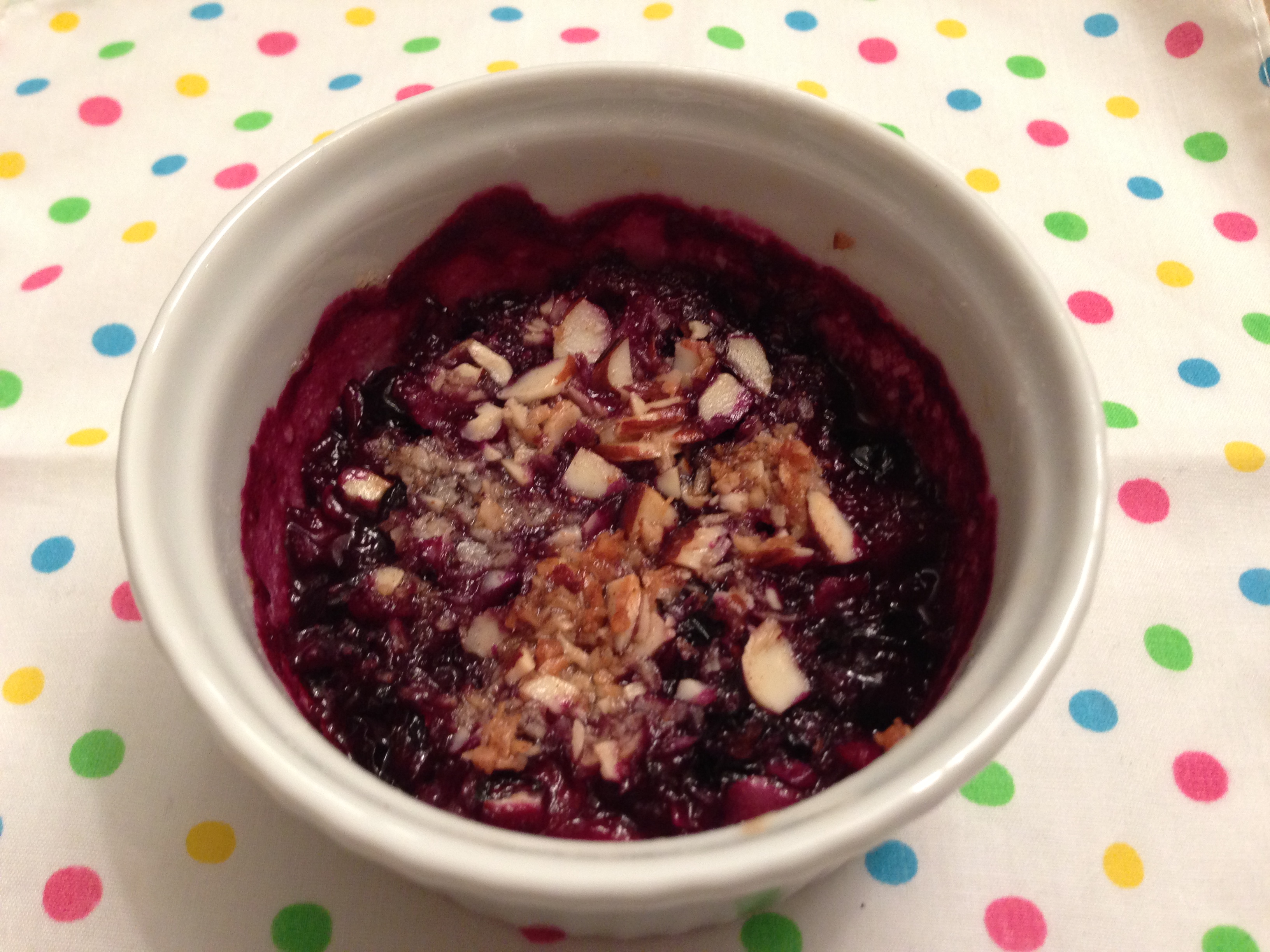 preheat oven to 350. Bake for 15 mintues, or until the topping is golden brown and blueberries are bubbling.