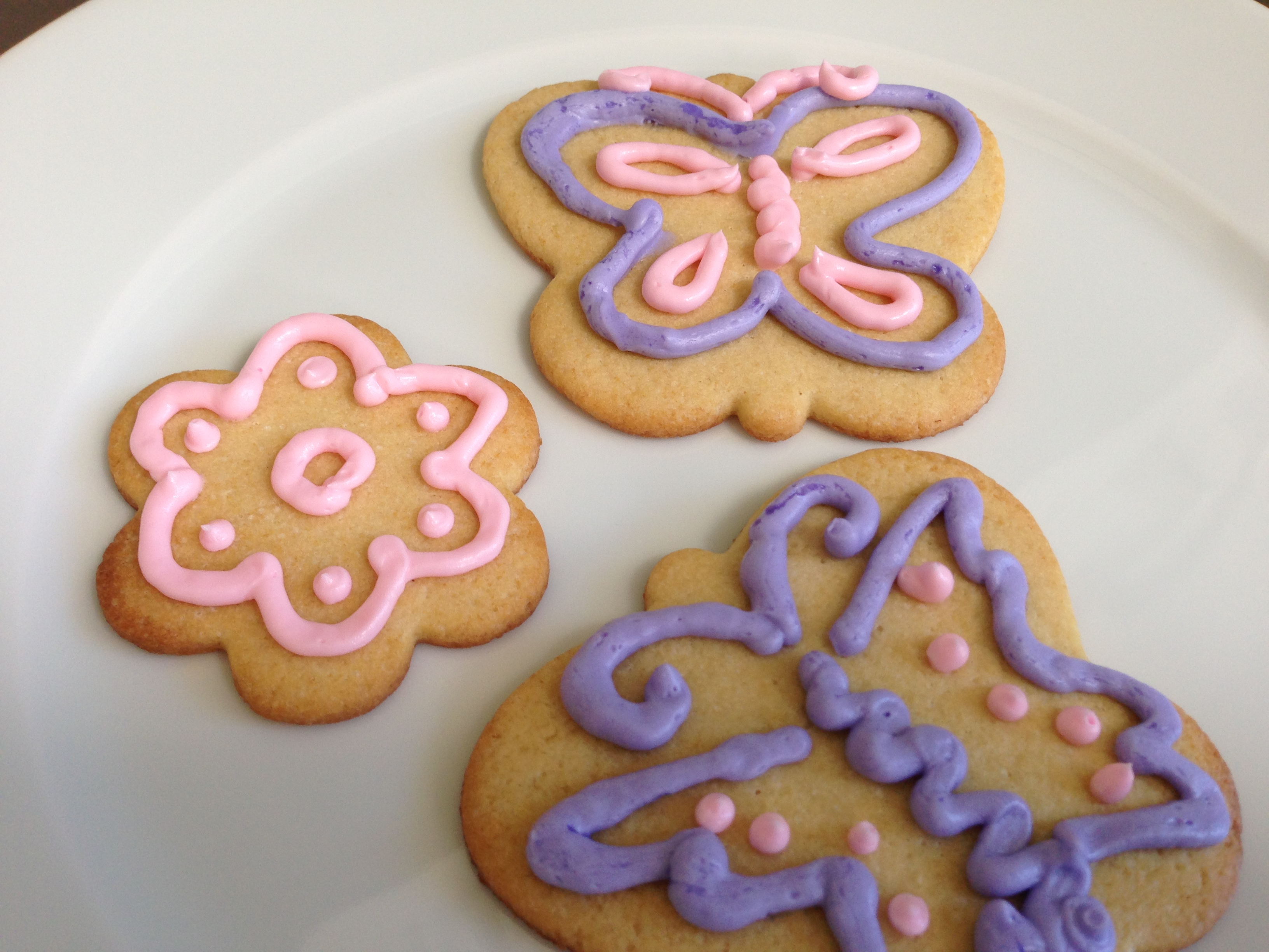 The icing i have used here is Dawn’s icing recipe. I just added coloring & flavor. I had to whip it quite a bit to get a good consistency to decorate the cookies, but it was worth it given how pretty they turned out and how Clara just loved it.